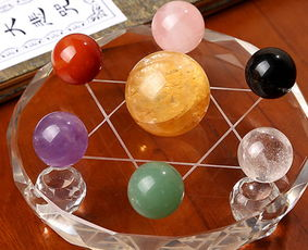 1.七星阵对角开始安置第一颗晶球,由黄水晶球、白水晶球、黑玉髓球、红玉髓球、粉晶球、萤石球依顺位顺时钟方向排列;正中的大主石球(萤石球)为最后定位之晶球。